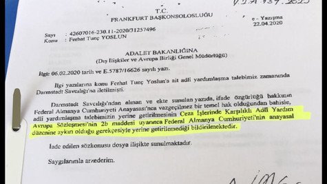Official correspondence from Turkey’s consulate general in Frankfurt to the Justice Ministry in Ankara has revealed that a German prosecutor denied a request for judicial assistance submitted by a Turkish court in the case of famous singer Ferhat Tunç.
